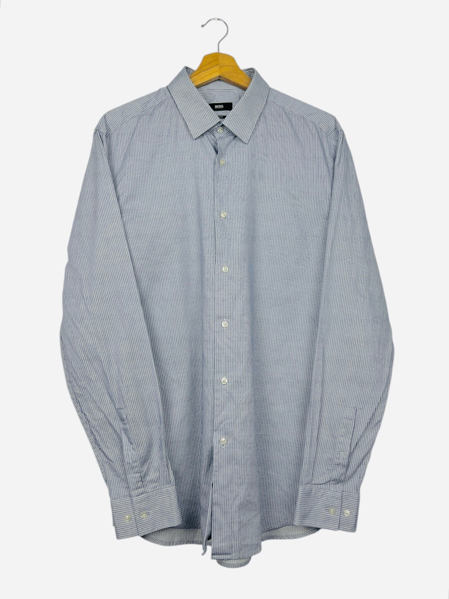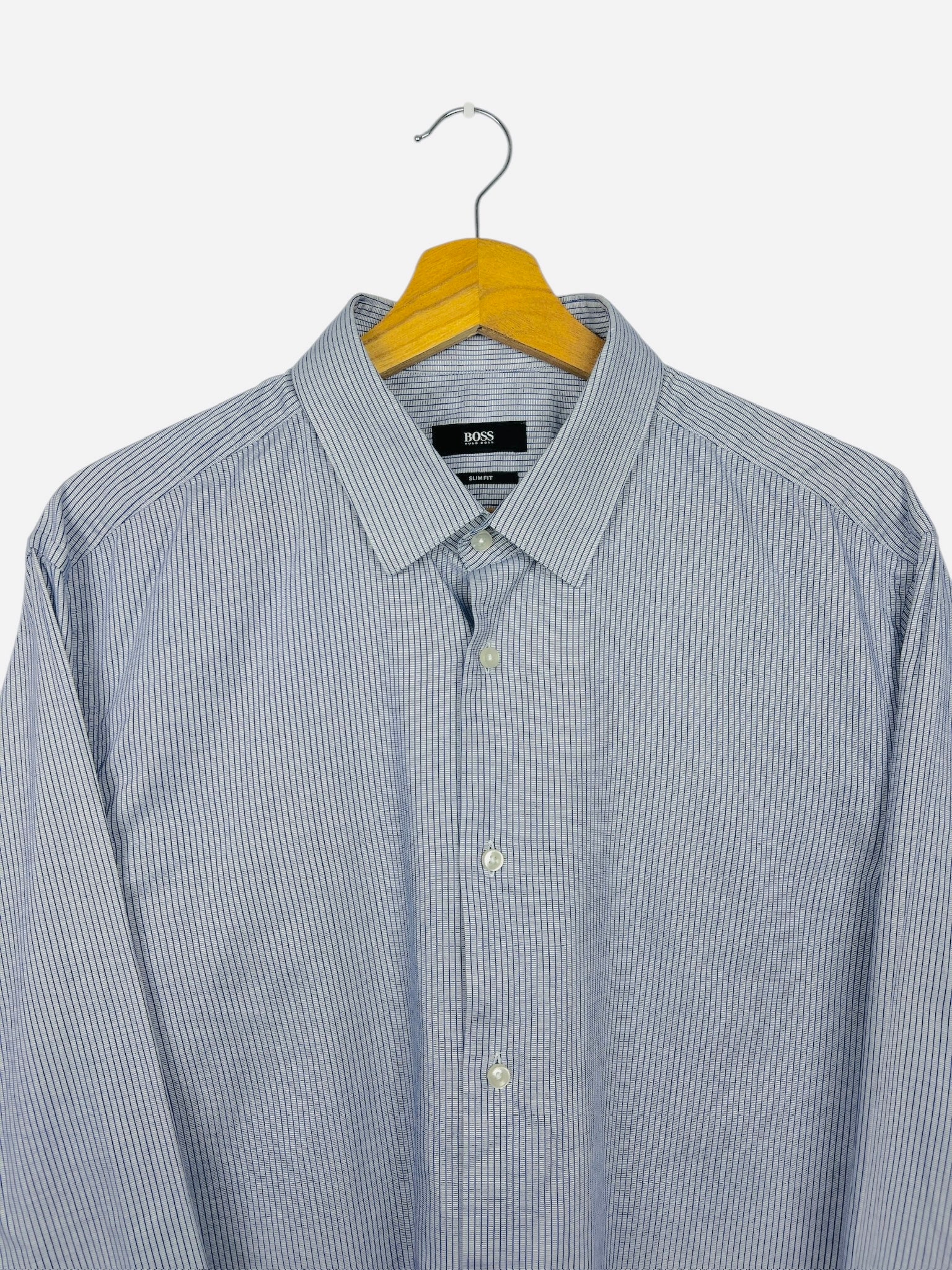 Chemise à Carreaux Hugo BOSS Vintage Luxe Bleu, Gris - L (B125)