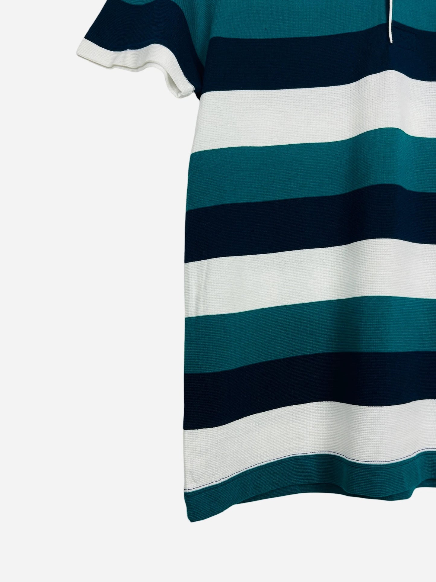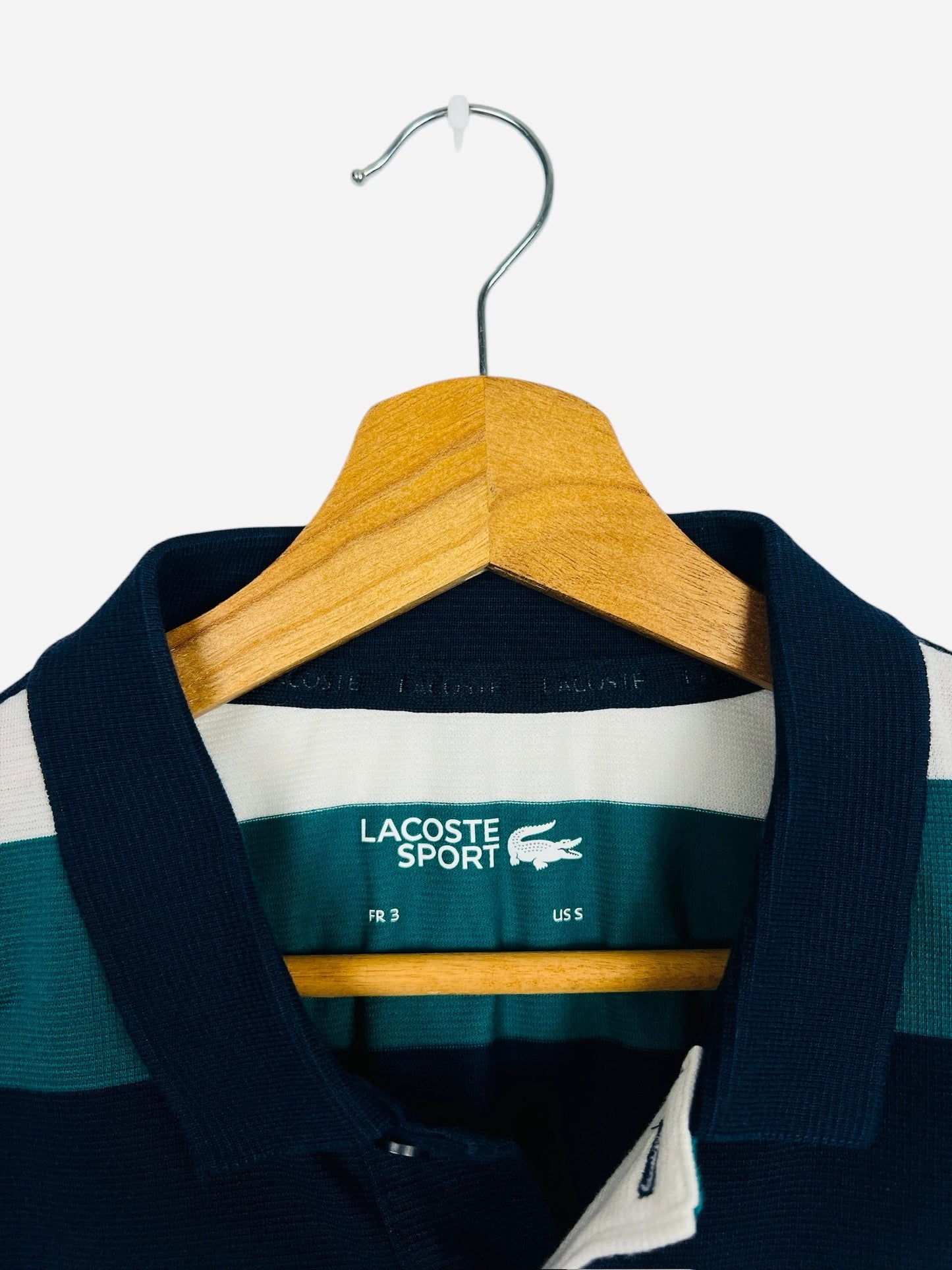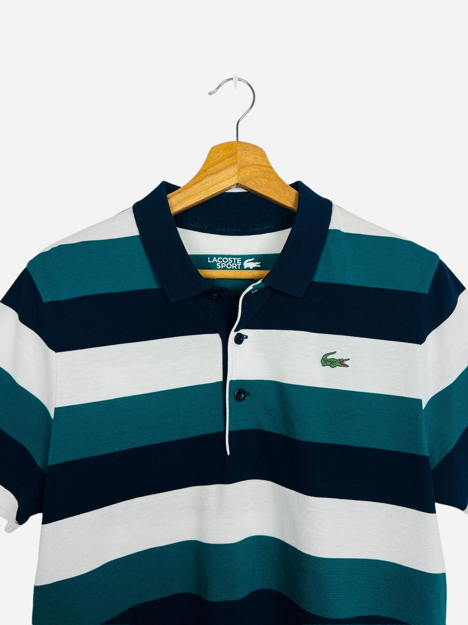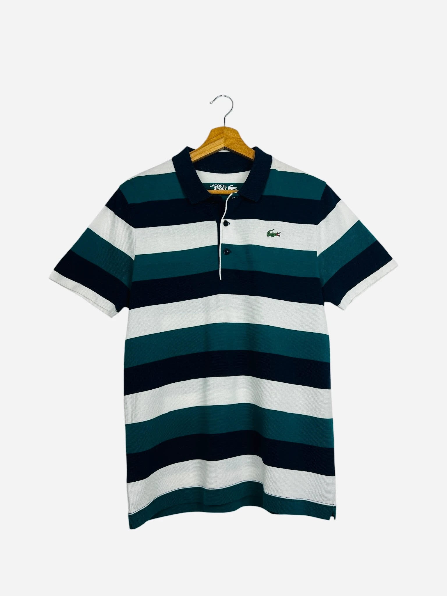 Polo Lacoste Rayé Sport Vintage Blanc & Vert Made in France - S (B102)