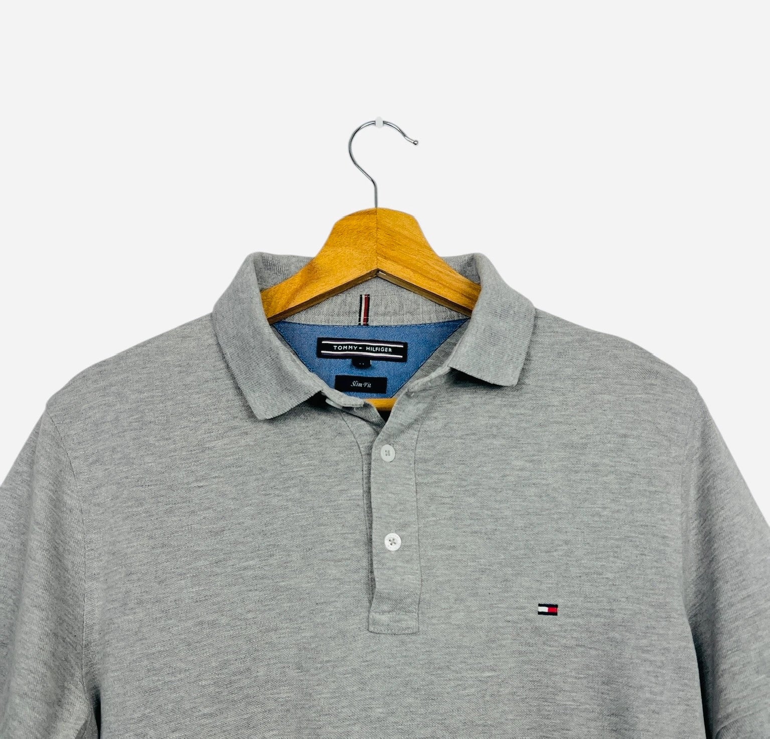 Polo Tommy Hilfiger Logo Brodé Uni Gris - M (B77)