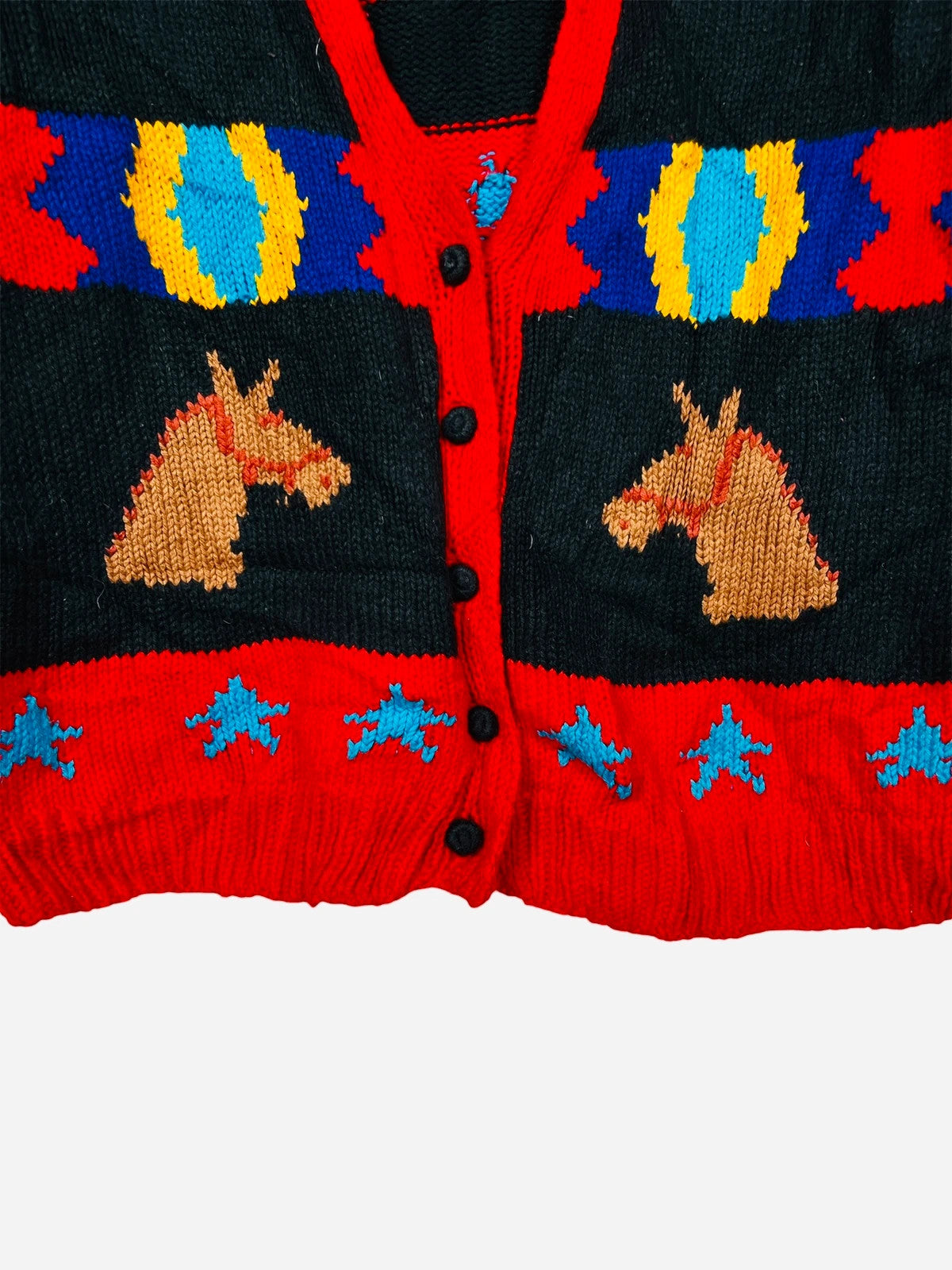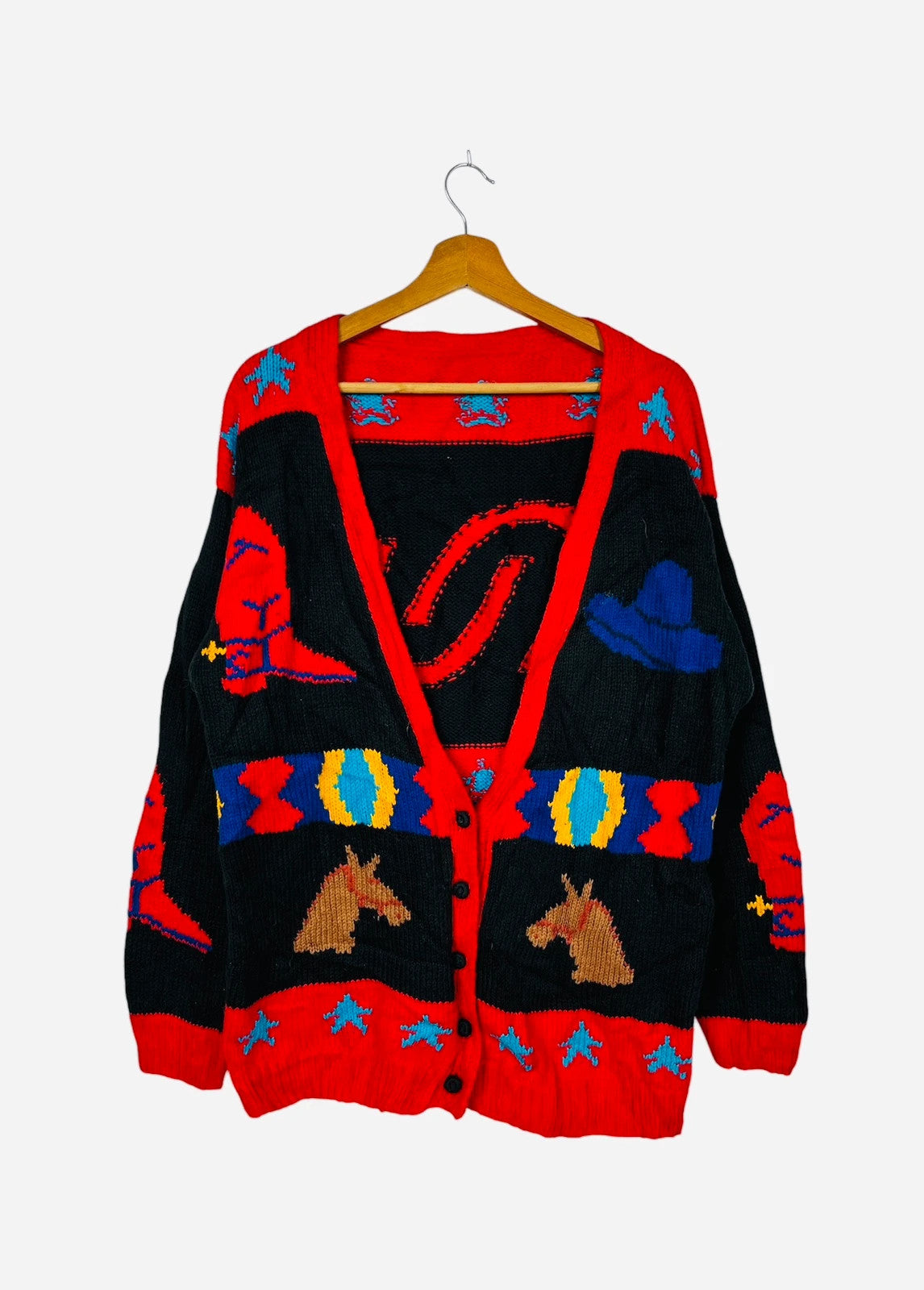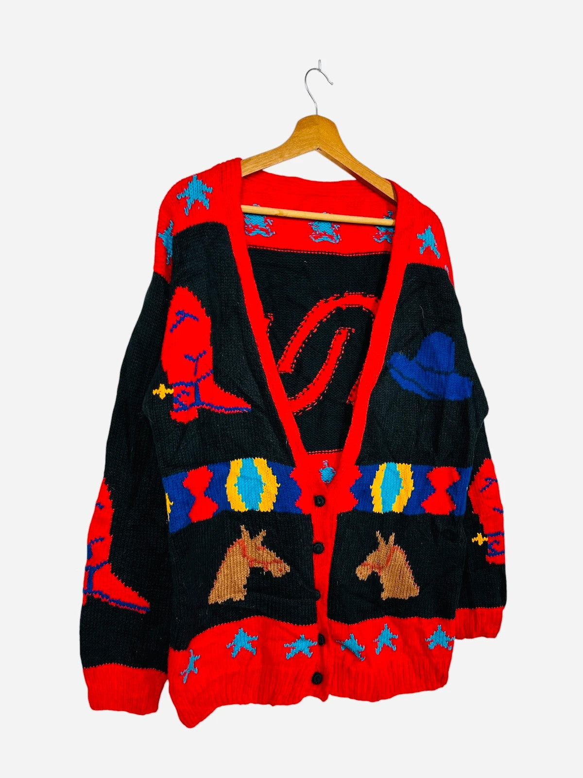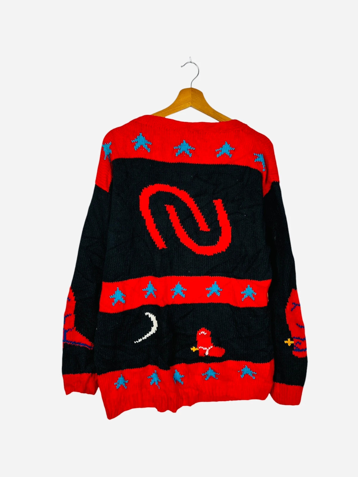 Pull Cardigan à Motif Vintage Noël Gilet Rouge & Noir - L (A402)